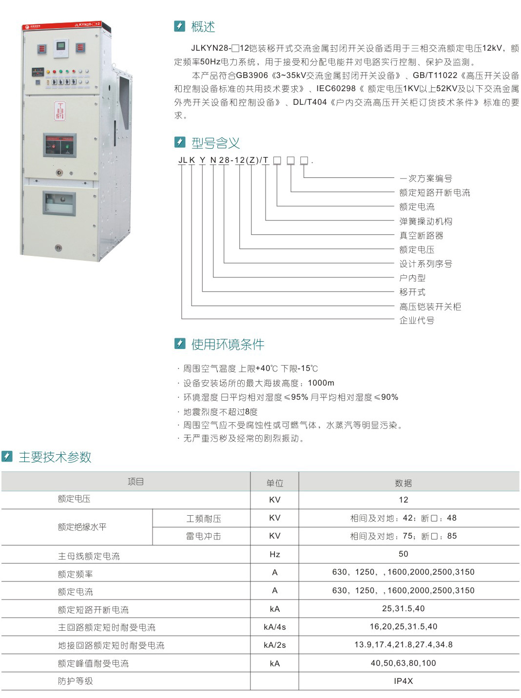 JLKYN28-□12 鎧裝移開式交流金屬封閉開關設備