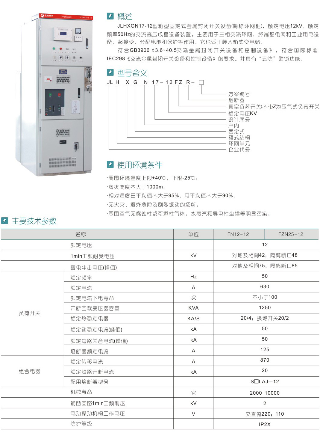 JLHXGN17-12 箱型固定式交流金屬封閉開關設備
