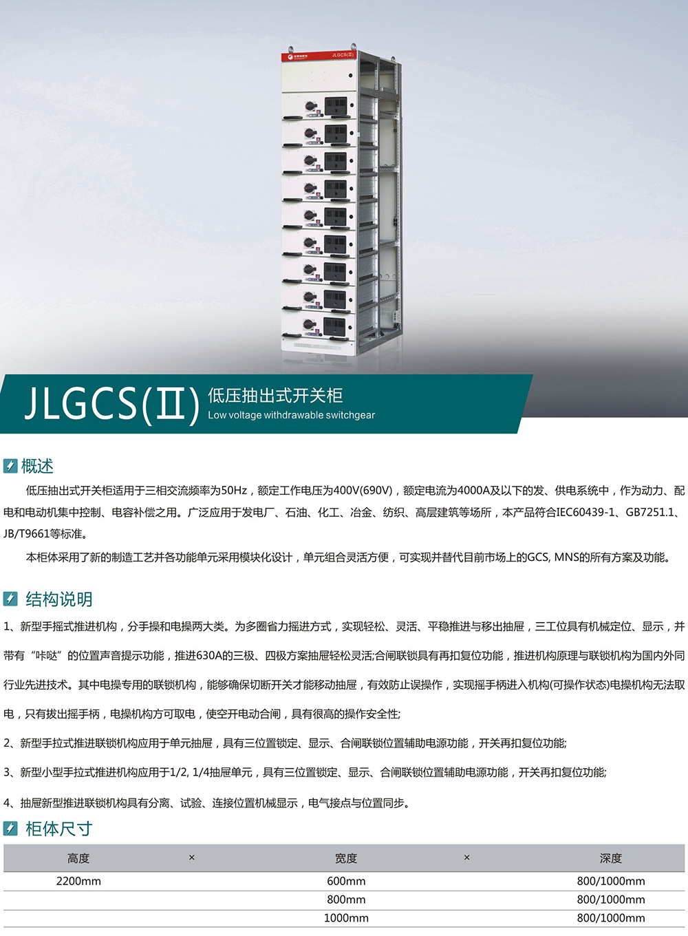 JLGCS(Ⅱ) 低壓抽出式開關柜