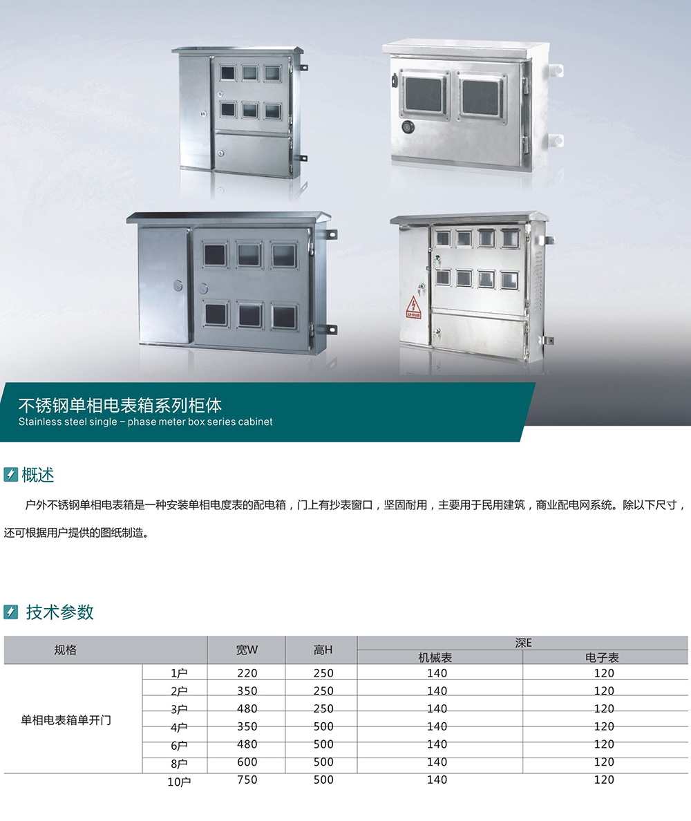不銹鋼單相電表箱系列柜體